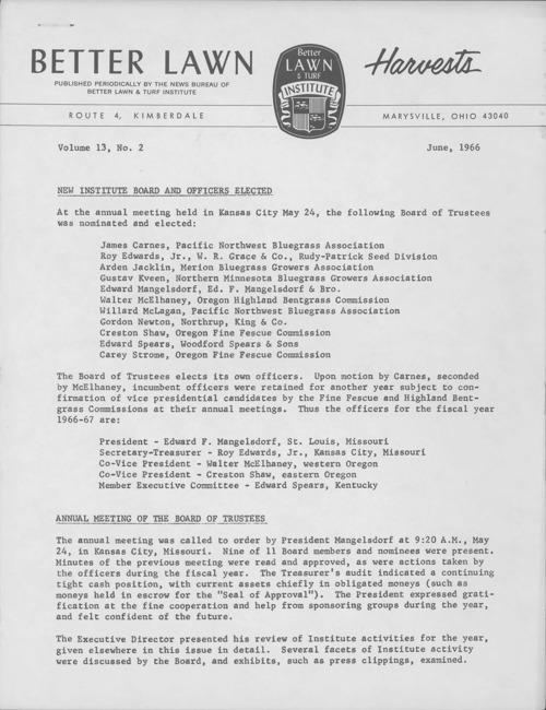 Better lawn harvests. Vol. 13 no. 2 (1966 June)