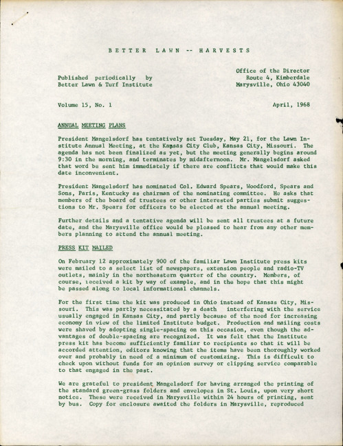 Better lawn harvests. Vol. 15 no. 1 (1968 April)
