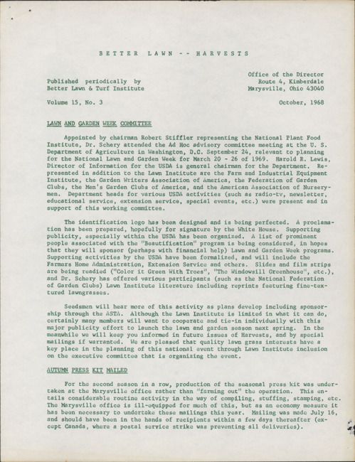 Better lawn harvests. Vol. 15 no. 3 (1968 October)