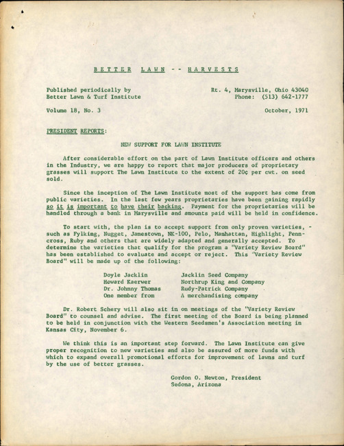 Better lawn harvests. Vol. 18 no. 3 (1971 October)