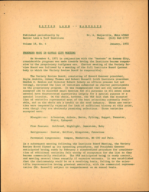 Better lawn harvests. Vol. 18 no. 4 (1972 January)