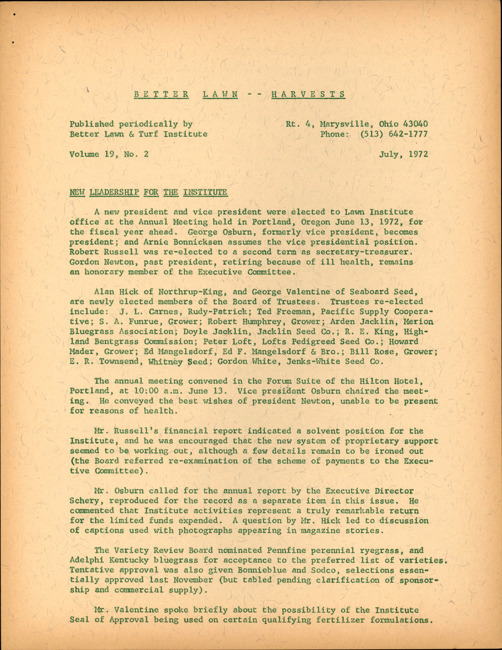 Better lawn harvests. Vol. 19 no. 2 (1972 July)
