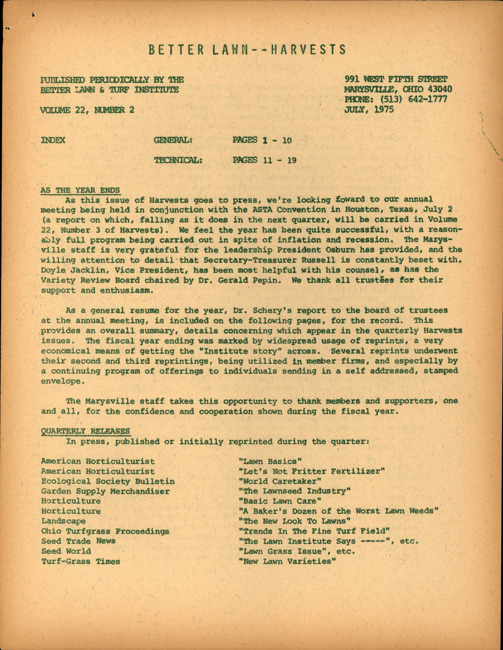 Better lawn harvests. Vol. 22 no. 2 (1975 July)