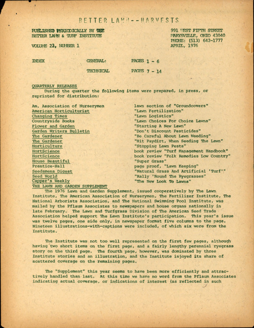 Better lawn harvests. Vol. 23 no. 1 (1976 April)