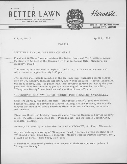 Better lawn harvests. Vol. 5 no. 5 (1959 April 1)