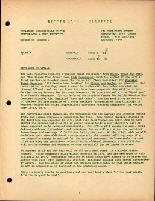 Better lawn harvests. Vol. 23 no. 4 (1976 December)