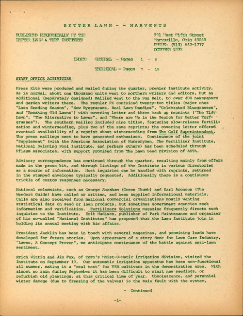 Better lawn harvests. Vol. 25 no. 3 (1978 October)