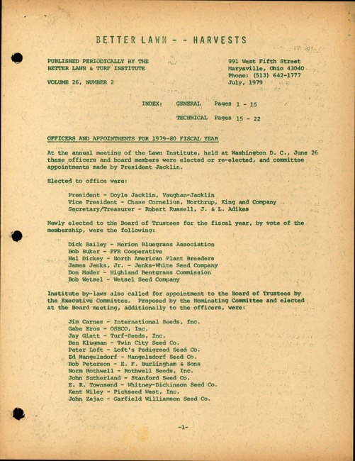 Better lawn harvests. Vol. 26 no. 2 (1979 July)