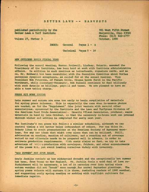 Better lawn harvests. Vol. 27 no. 3 (1980 October)