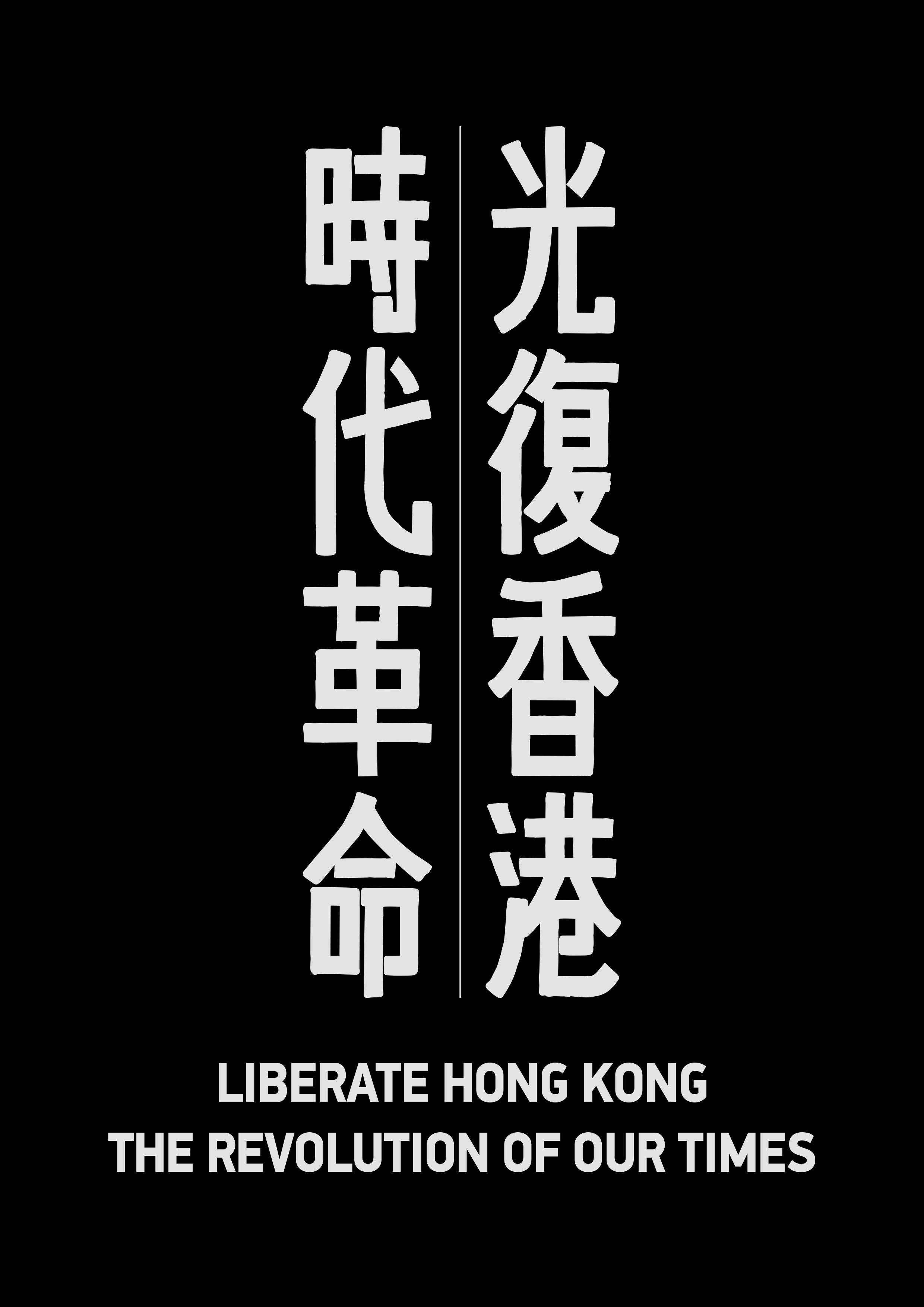 Poster shows the slogan of the protest movement in Chinese and English in white with a black background.