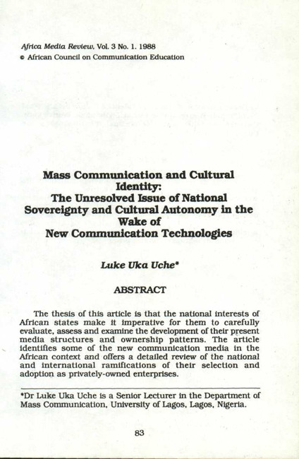 The thesis of this article is that the national interests of African states make it imperative for them to carefully evaluate, assess and examine the development of their present media structures and ownership patterns. The article identifies some of the new communication media in the African context and offers a detailed review of the national and international ramifications of their selection and adoption as privately-owned enterprises.
