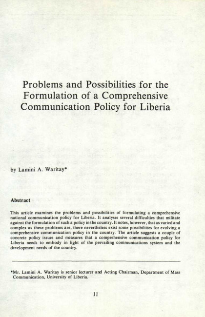 Problems and possibilities for the formulation of a comprehensive communication policy for Liberia