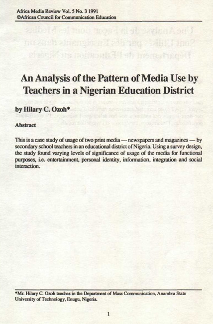 An analysis of the pattern of media use by teachers in a Nigerian education district