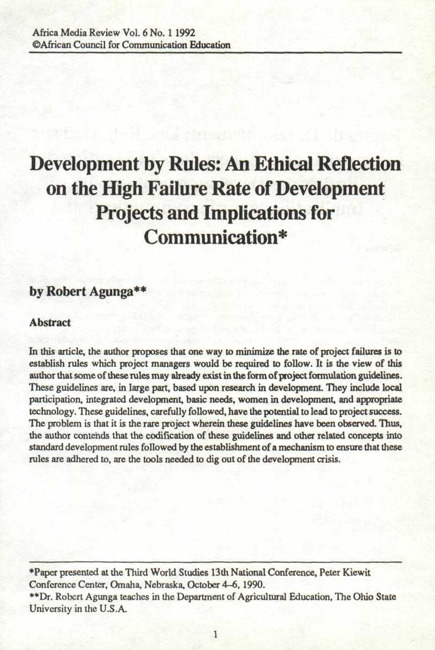 Development by rules : an ethical reflection on the high failure rate of development projects and implications for communication