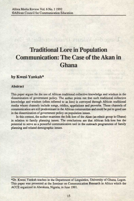 Traditional lore in population communication : the case of the Akan in Ghana