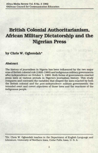 British colonial authoritarianism, African military dictatorship and the Nigerian press