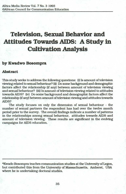 Television, sexual behavior and attitudes towards AIDS : a study in cultivation analysis