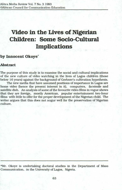 Video in the lives of Nigerian children : some socio-cultural implications