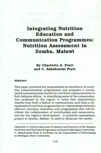 Integrating nutrition education and communication programmes : nutrition assessment in Zomba, Malawi