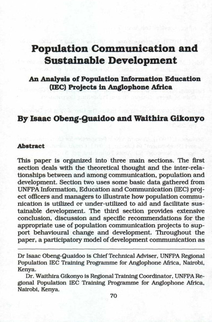 Population communication and sustainable development : an analysis of population information education (IEC) projects in Anglophone Africa