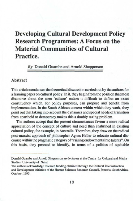 Developing cultural development policy research programmes : a focus on the material communities of cultural practice