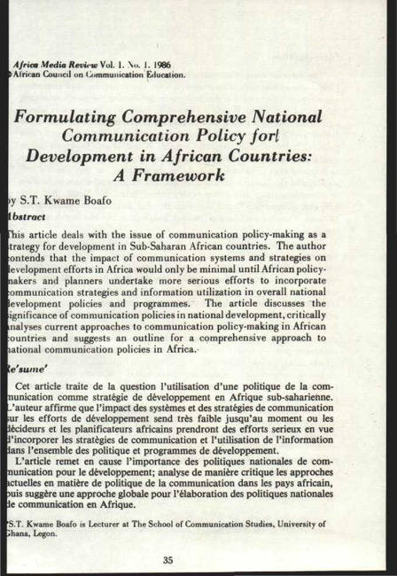 Formulating comprehensive national communication policy for development in African countries : a framework