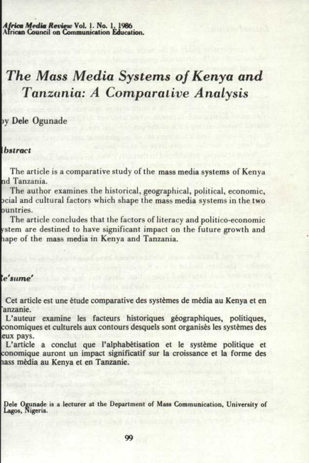 The mass media systems of Kenya and Tanzania : a comparative analysis