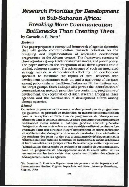 Research priorities/or development in SubSaharan Africa : breaking more communication bottlenecks than creating them