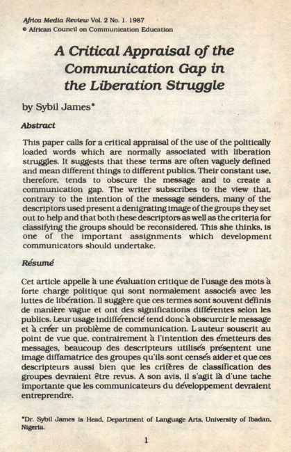 A critical appraisal of the communication gap in the liberation struggle