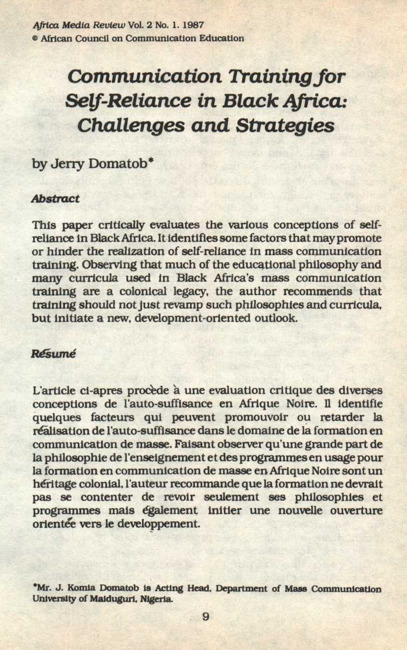 Communication training for self-reliance in Black Africa : challenges and strategies