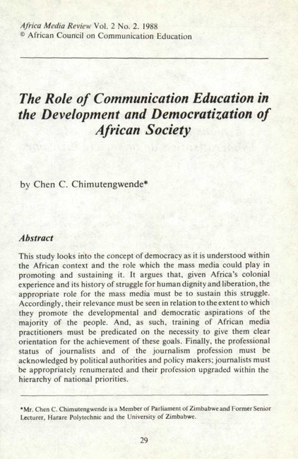 The role of communication education in the development and democratization of African society