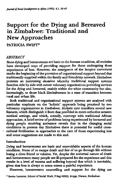 Support for the dying and bereaved in Zimbabwe : traditional and new approaches