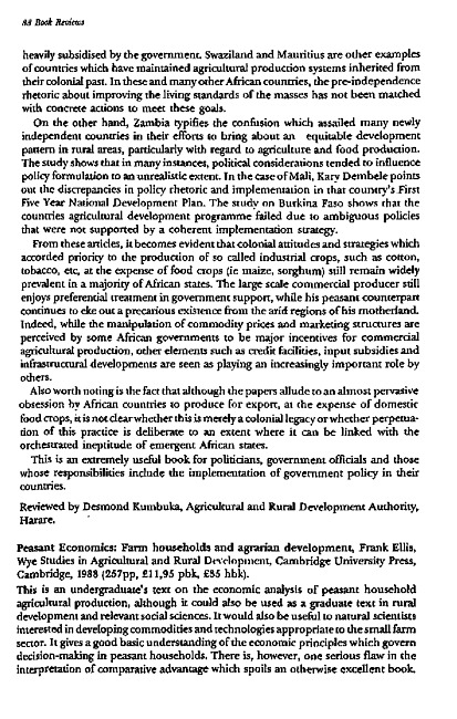 Review of: Frank Ellis. Peasant eonomics. Cambridge: Cambridge University Press, 1988