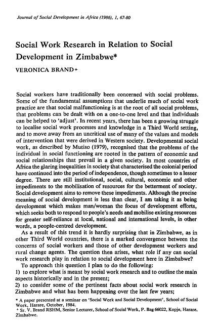 Journal of social development in Africa. Vol. 1 No. 1 (1986)