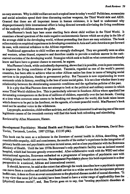 Review of: David Ben-Tovim. Development psychiatry. London: Tavistock, 1987