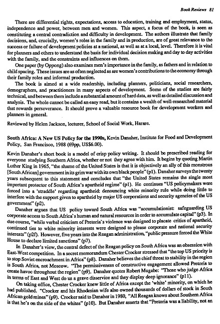 Review of: Kevin Danaher. South Africa. San Francisco: Institute for Food and Development Policy, 1988