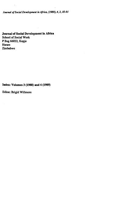 Index to Journal of Social Development in Africa, Vol 3 (1988) and 4 (1989)