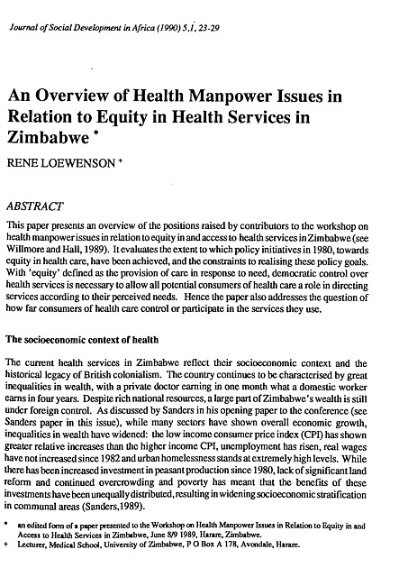 An overview of health manpower issues in relation to equity in health services in Zimbabwe