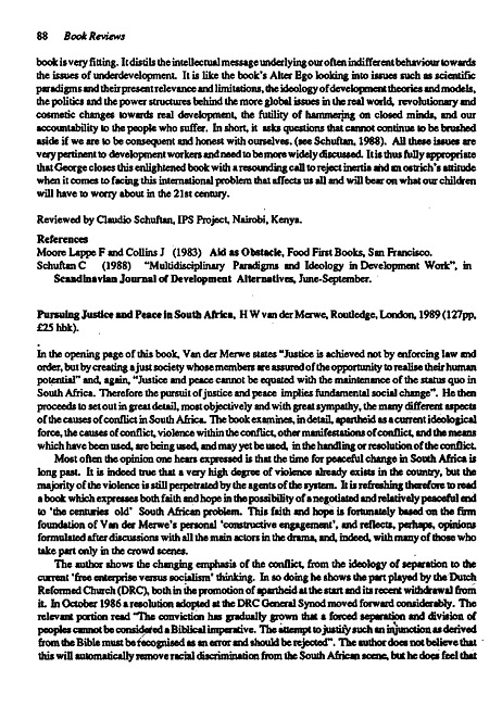 Review of: H.W. van der Merwe. Pursuing justice and peace in South Africa. London: Routledge, 1989