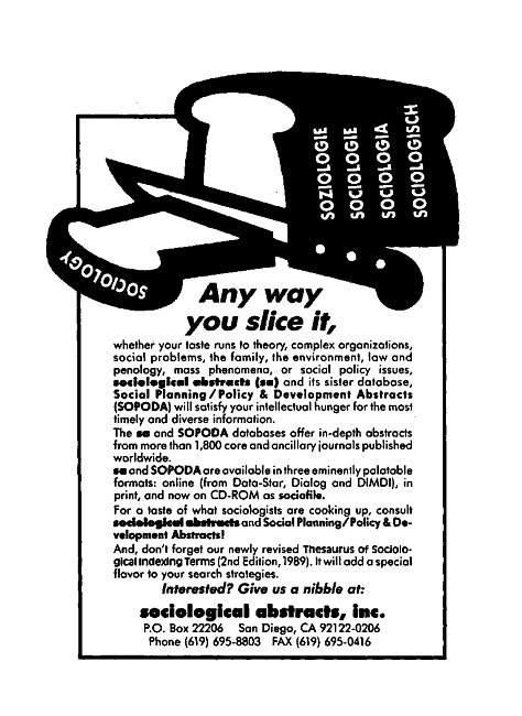 Advertisement for the Sociological abstracts (SA) and Social planning/policy & development abstracts (SOPODA) databases