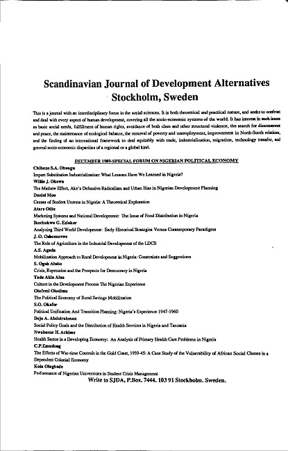 Scandinavian journal of development alternatives, Stockholm, Sweden