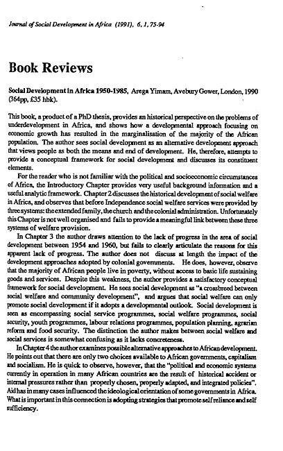 Book review : Social development in Africa 1950-1985 by Arega Yimam