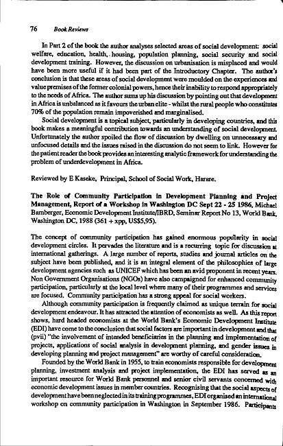 Book review : The role of community participation in development planning and project management by Michael Bamberger