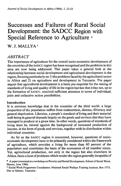 Successes and failures of rural social development : the SADCC region with special reference to agriculture