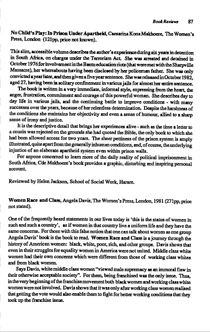 Review of: Angela Davis. Women race and class. London: Women's Press, 1981