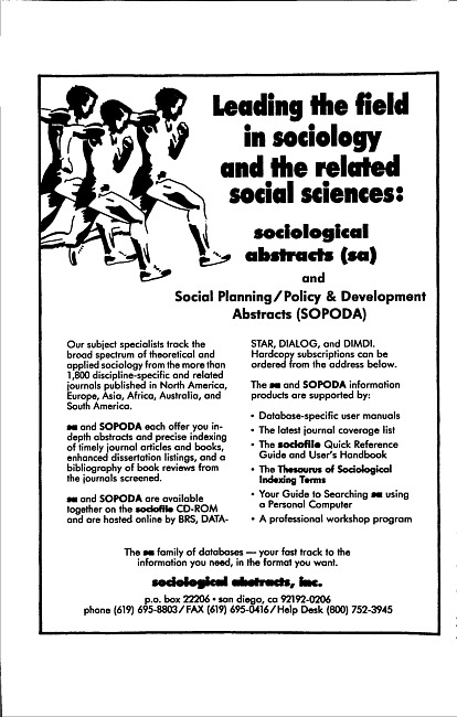 Advertisement for Sociological abstracts (SA) and Social planning/policy & development abstracts (SOPODA)