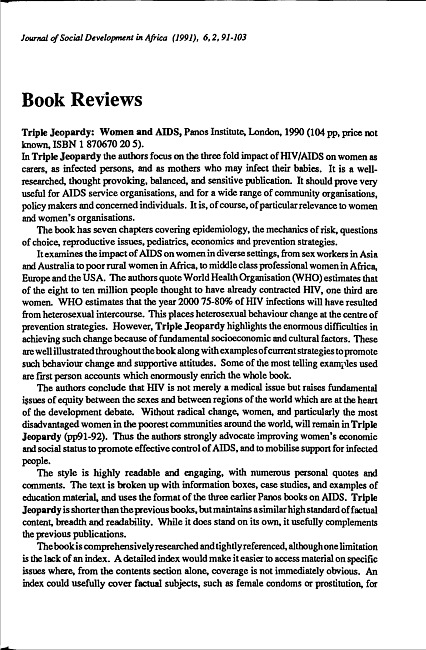 Review of: Triple jeopardy. London: Panos Institute, 1990