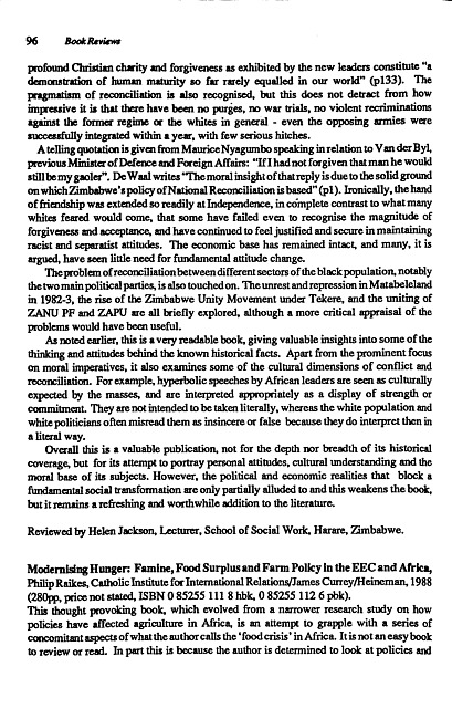 Review of: Philip Raikes. Modernising hunger. London: Catholic Institute for International Relations in collaboration with James Curry, 1988