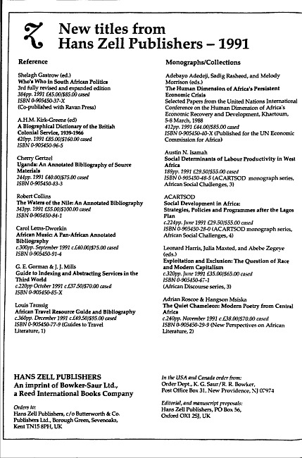 Advertisements, index to Journal of social development in Africa vol. 5 (1990) and 6 (1991), notes for contributors