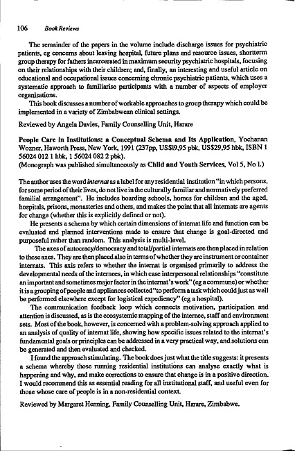 Review of: Yochanan Wozner. People care in institutions. New York: Haworth Press, 1990